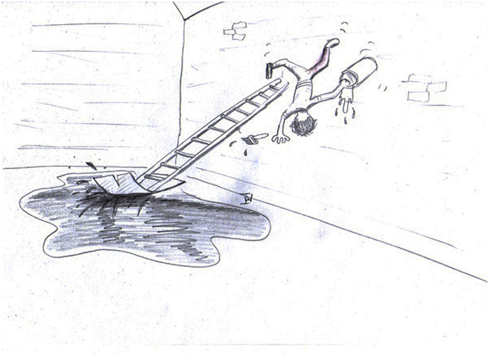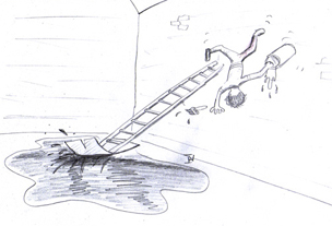 It wasn’t a good idea putting ladders on an oily surface!